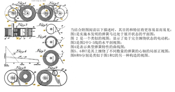 通过将弹簧在其 2 1' 长度上的偏压变化与鼓直径相关联,可以生产具有大匝数与弹簧长度比和非常平坦的梯度的弹簧马达当弹簧回绕在鼓上时,弹簧的每个增量都受到相同的应力。弹簧的每个增量都受力到其弹性极限以获得弹簧材料的最大利用并确保弹簧的所有部分的受力相等。